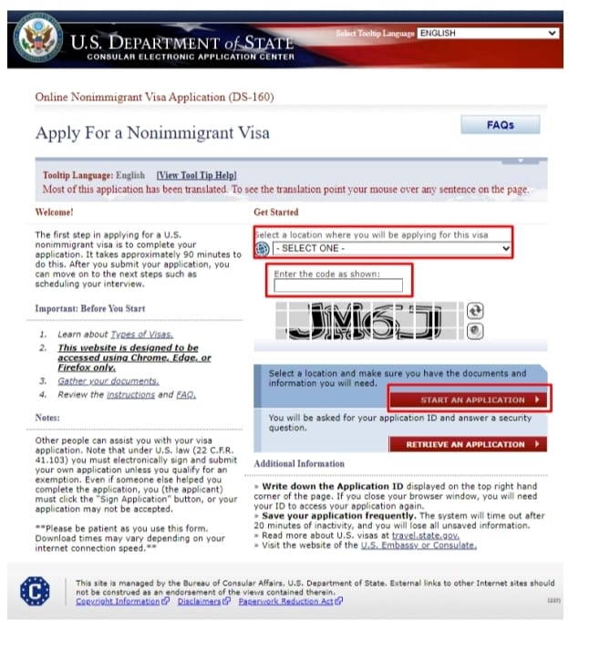 Step 3: Visit to the Consular Electronic Application Center (CEAC) website.