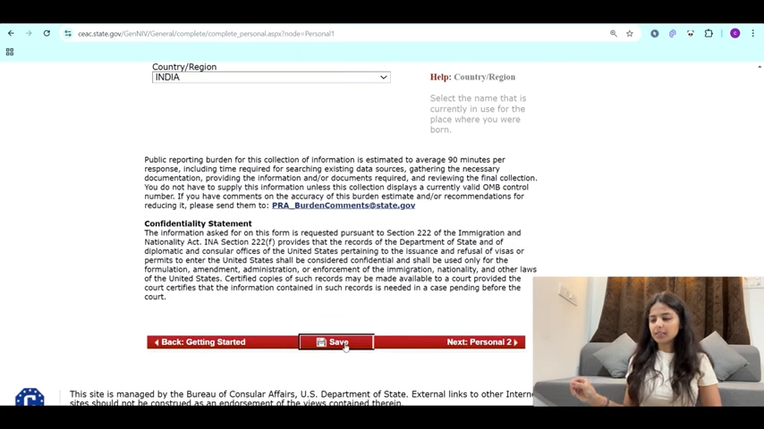Step 13: After completing all required details, scroll to the bottom and click Save, and move to the Next Personal information 2 page.
